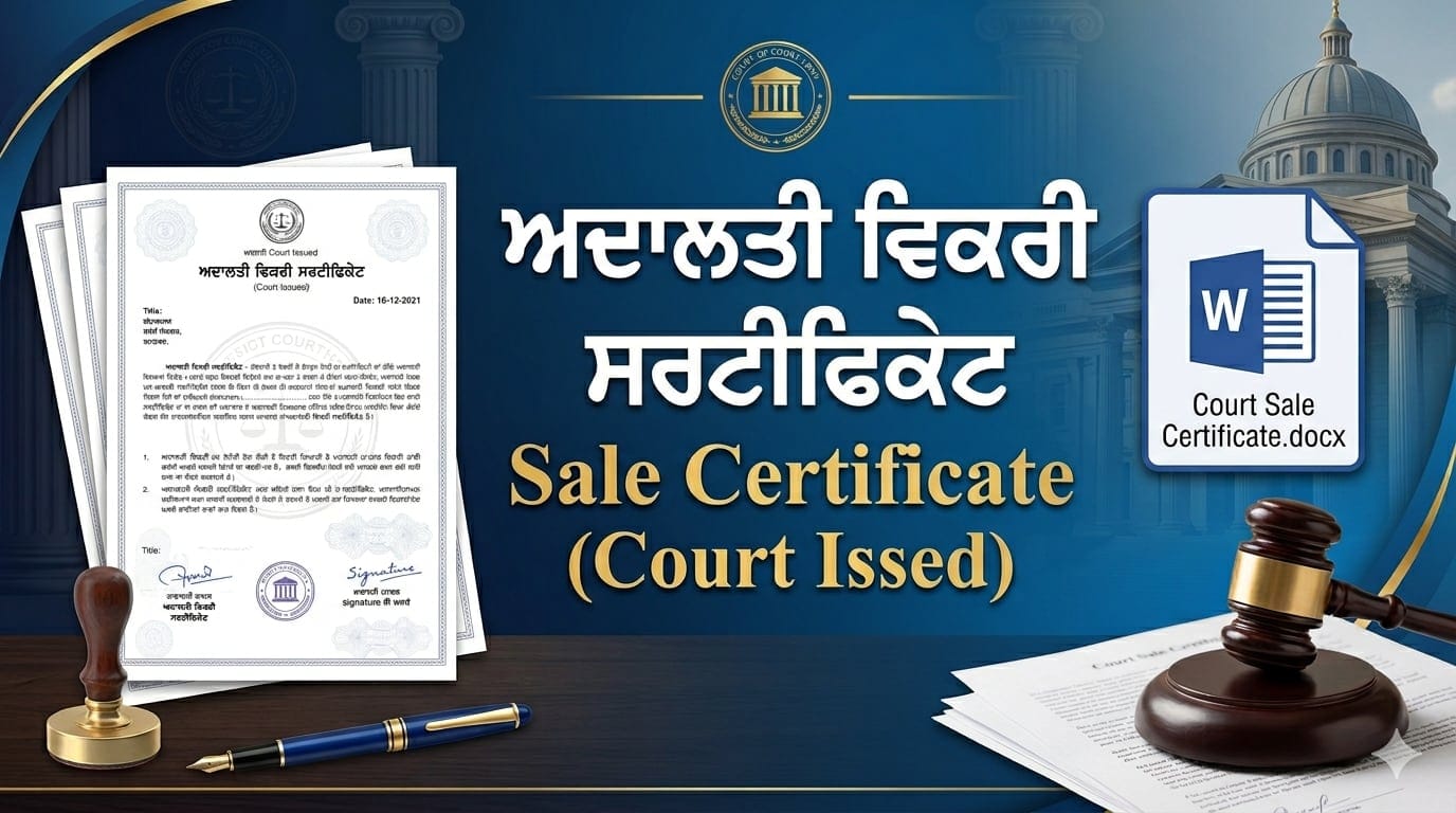 - ਪੂਰਾ Sale Certificate (ਅਦਾਲਤੀ ਵਿਕਰੀ ਸਰਟੀਫਿਕੇਟ) ਫਾਰਮੈਟ